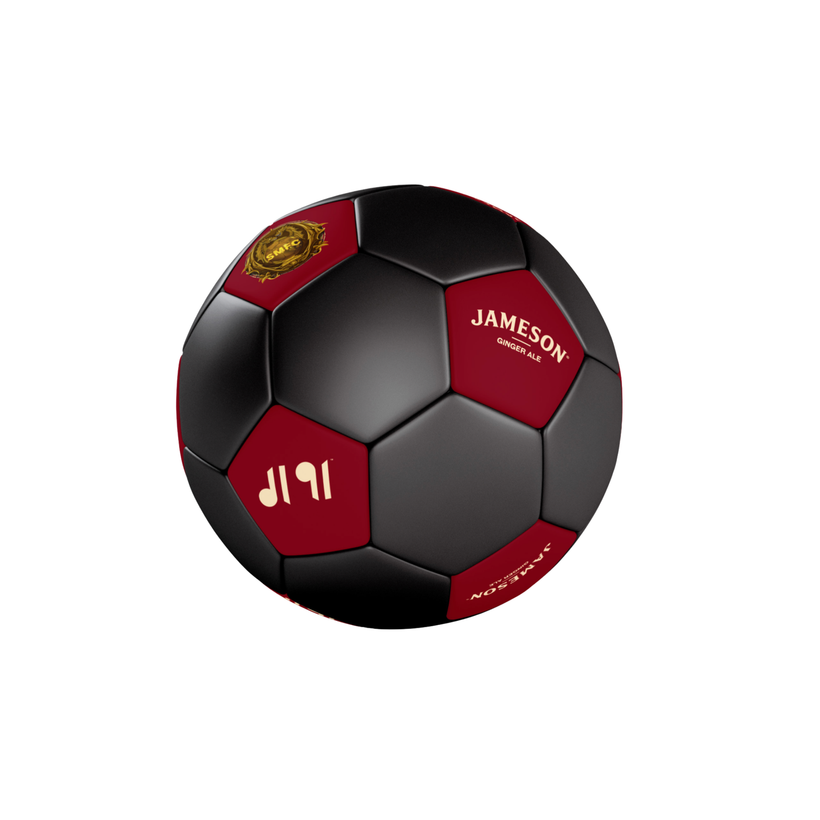 Limited edition red and black football, stamped with SMFC and Jameson Ginger Ale logos on the panels. For champions that do know the ball.