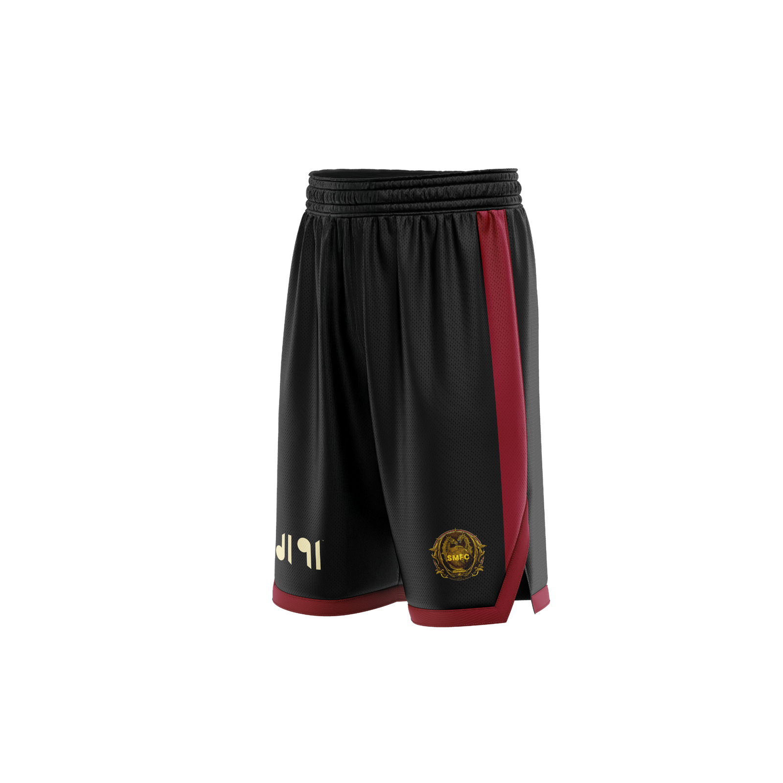 Black jersey shorts with striking red borders and signature SMFC, DL91, and Jameson J touches – limited edition, made for the pitch, ready for the streets.